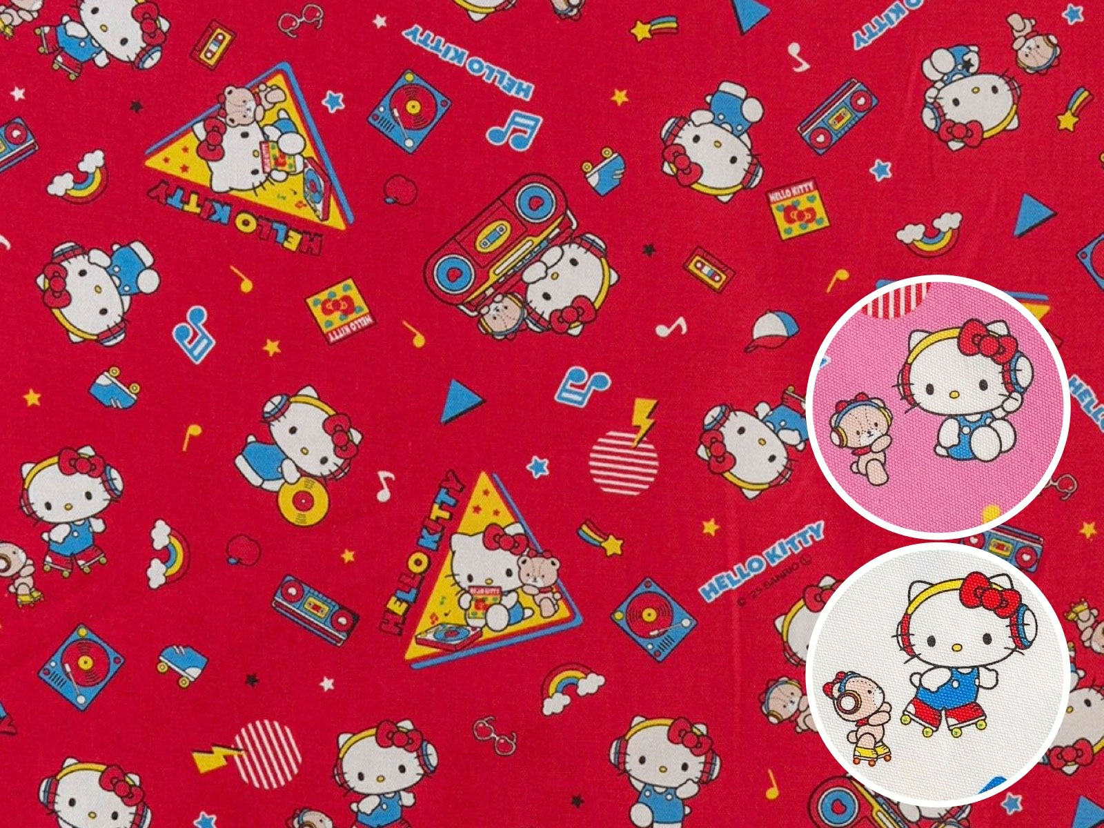 サンリオの人気キャラクター、ハローキティの生地。レトロな雰囲気のデザインです。
