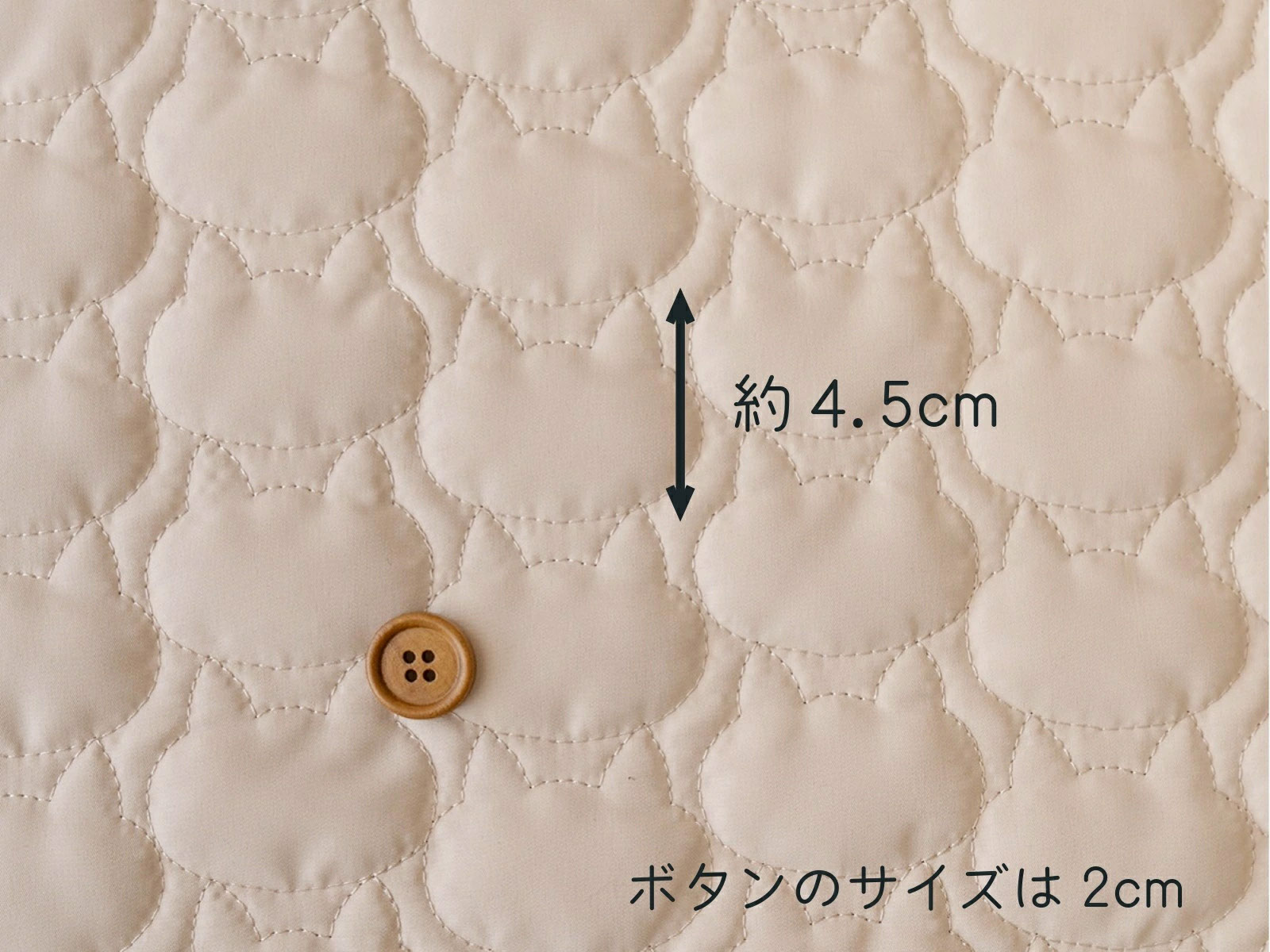 ネコの柄にステッチをかけた、ぷっくりと可愛らしいキルトです。