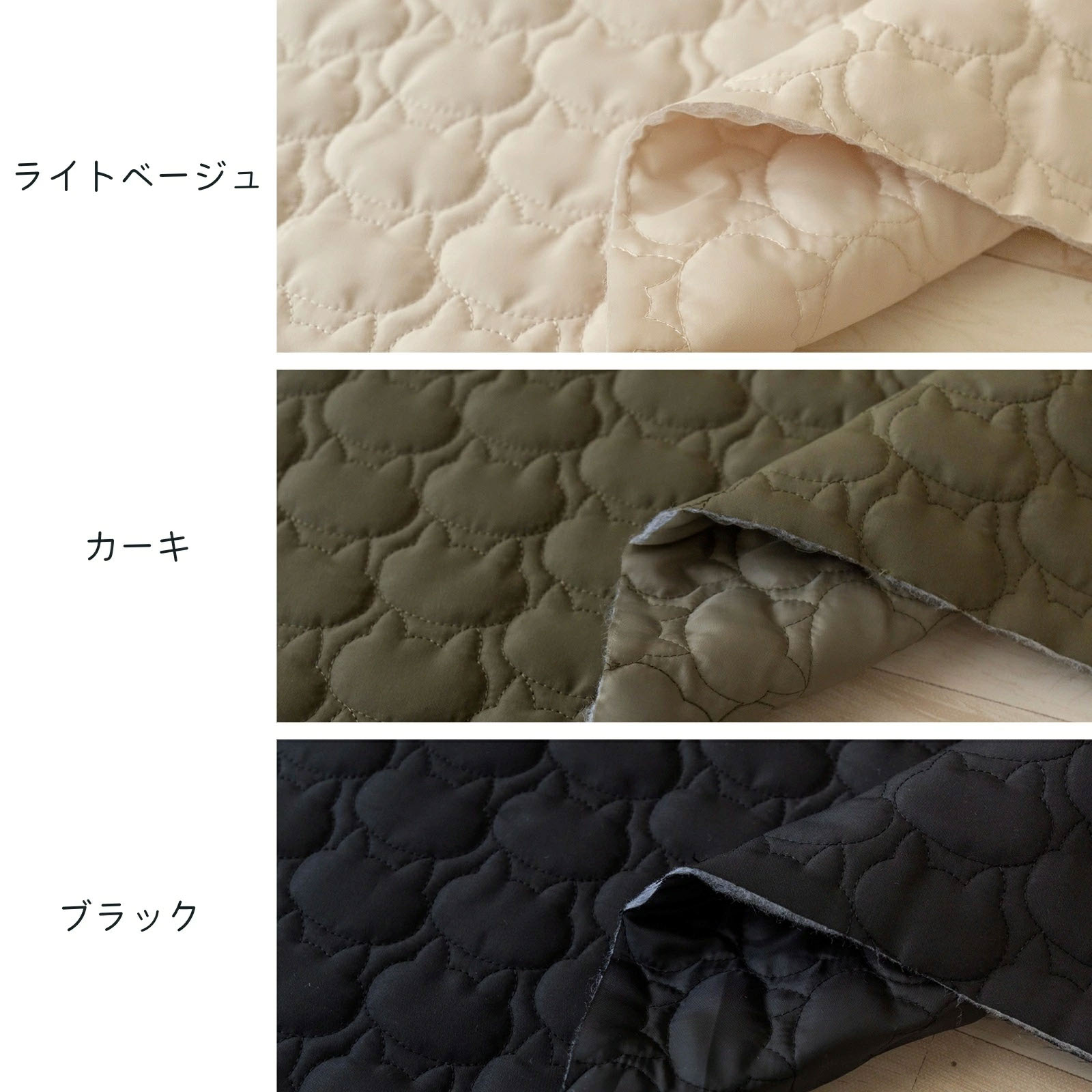 ポリエステル生地に綿をはさんだやや薄手のキルト生地です。