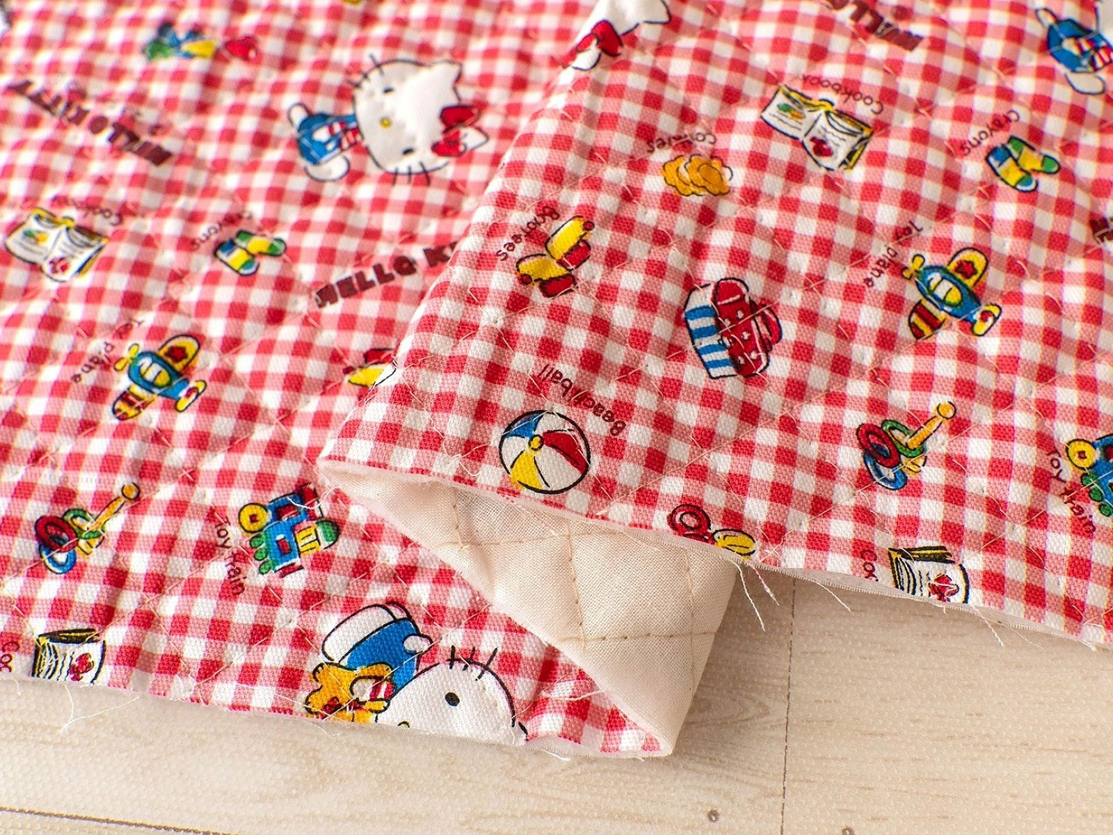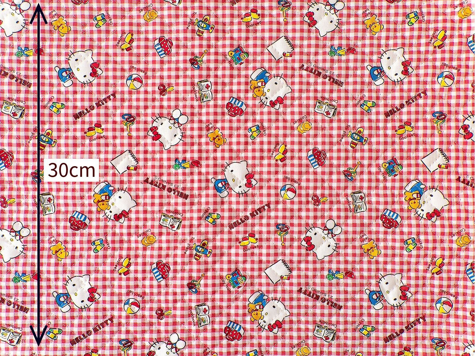 赤いギンガムチェックがレトロで可愛いキティちゃんのキルティング生地