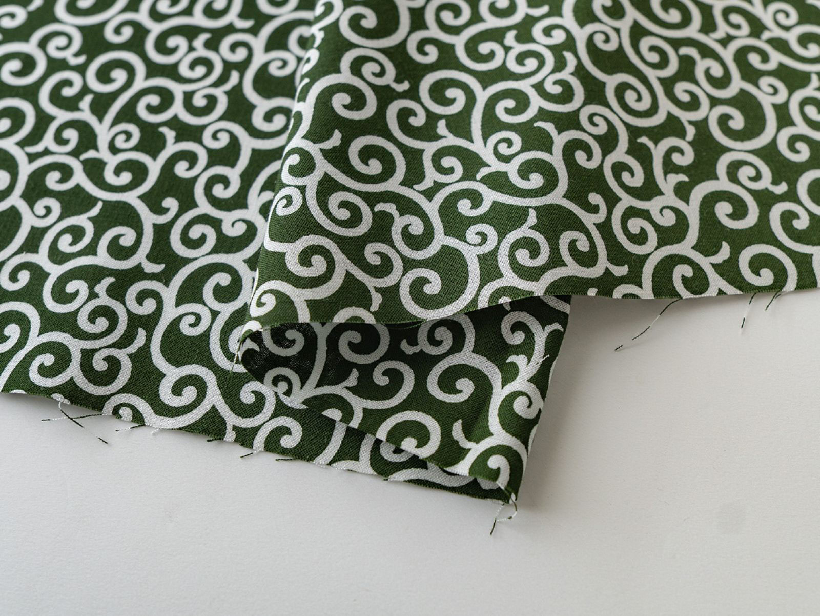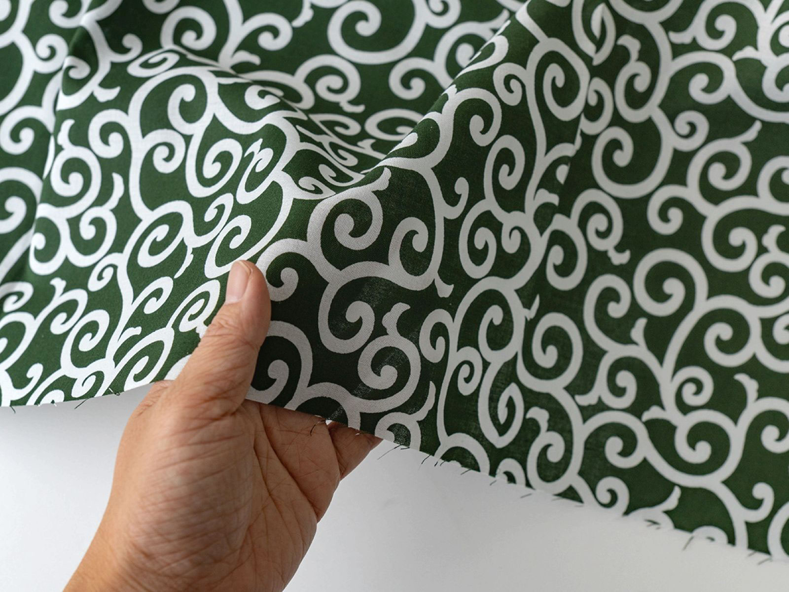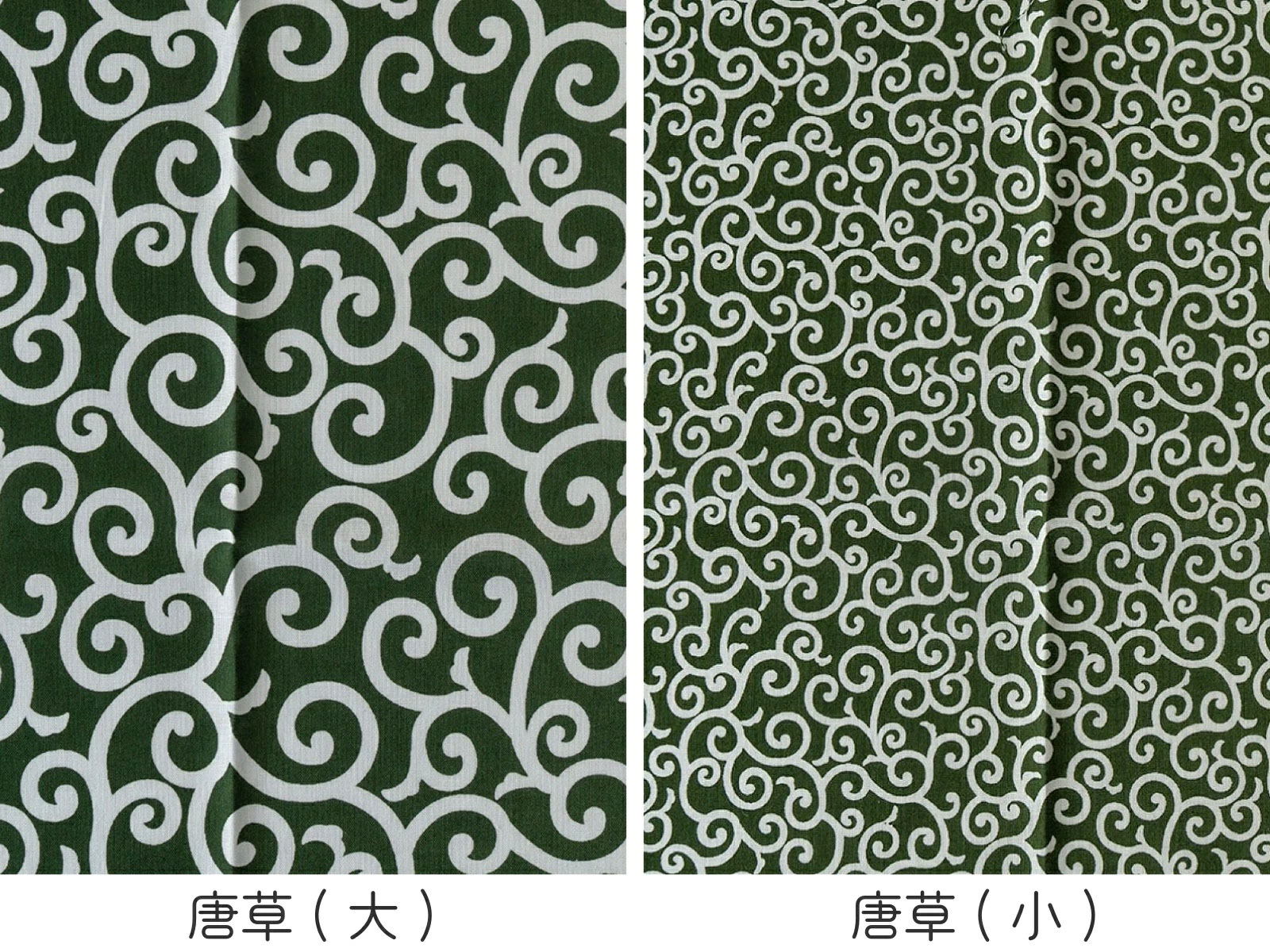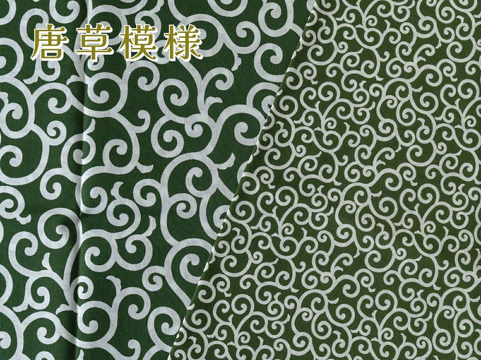 日本の伝統的な和柄、唐草模様の生地。薄手ですがハリがあり扱いやすいスケアプリントです。
