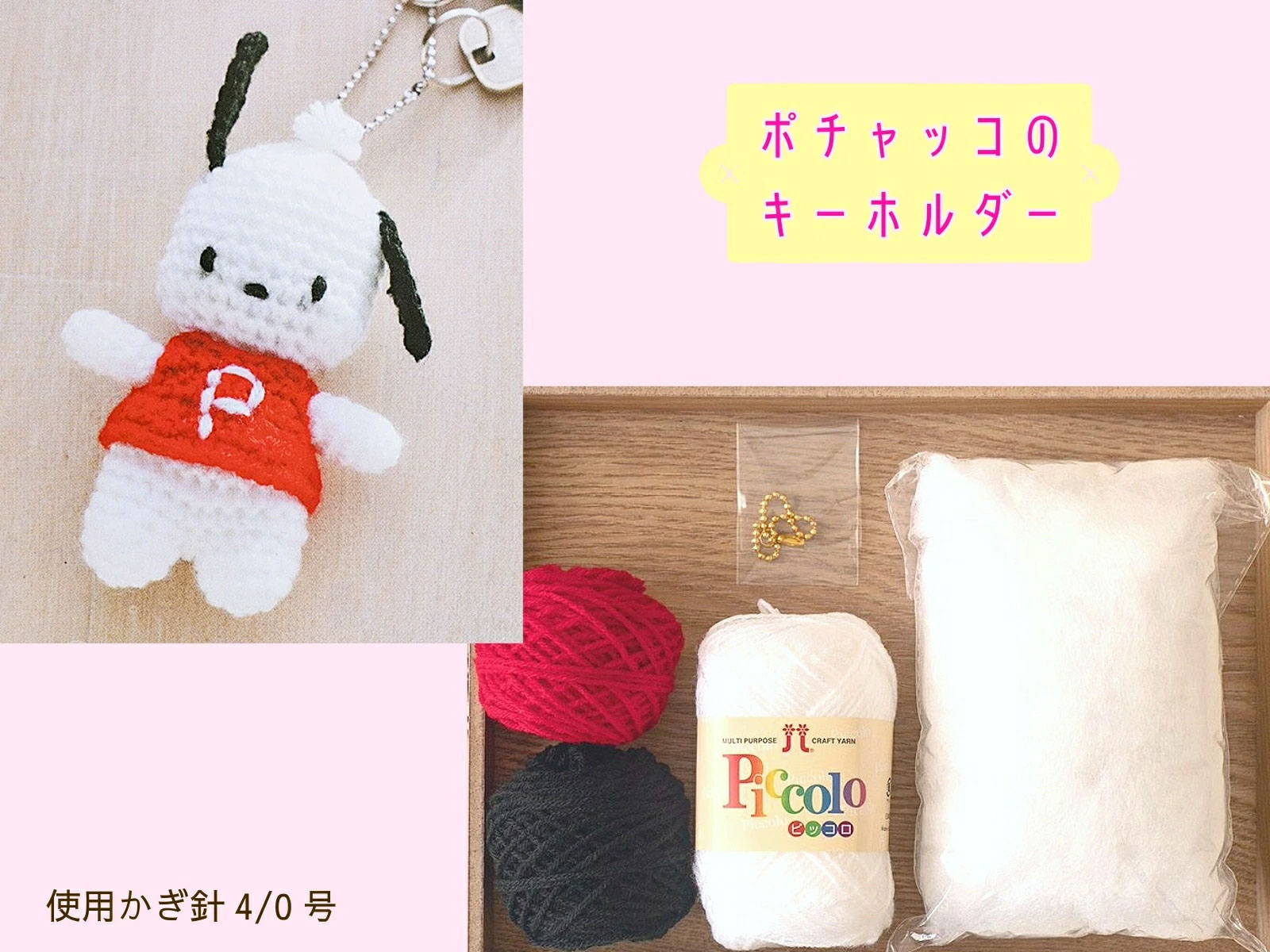 ハローキティ、マイメロディ、ポチャッコの3点が編めるセットです