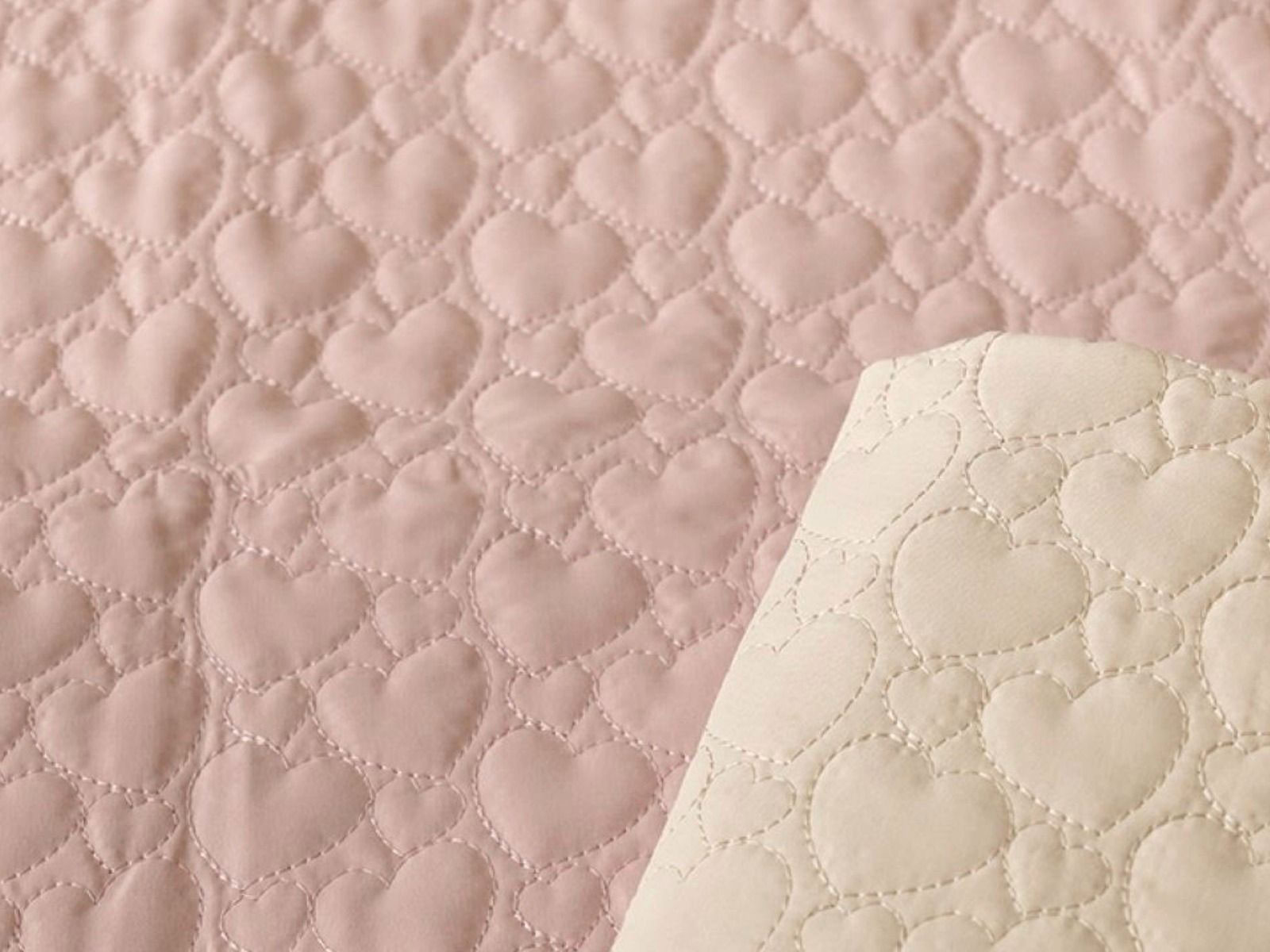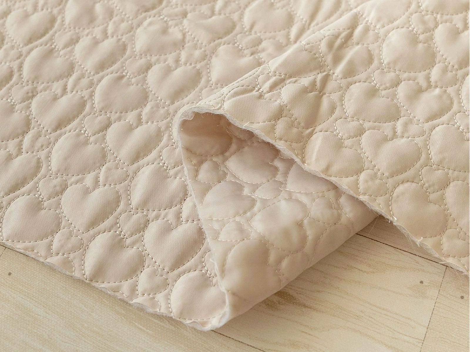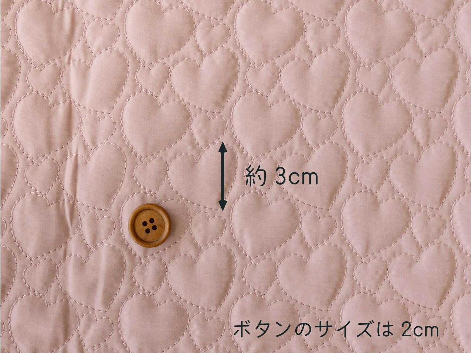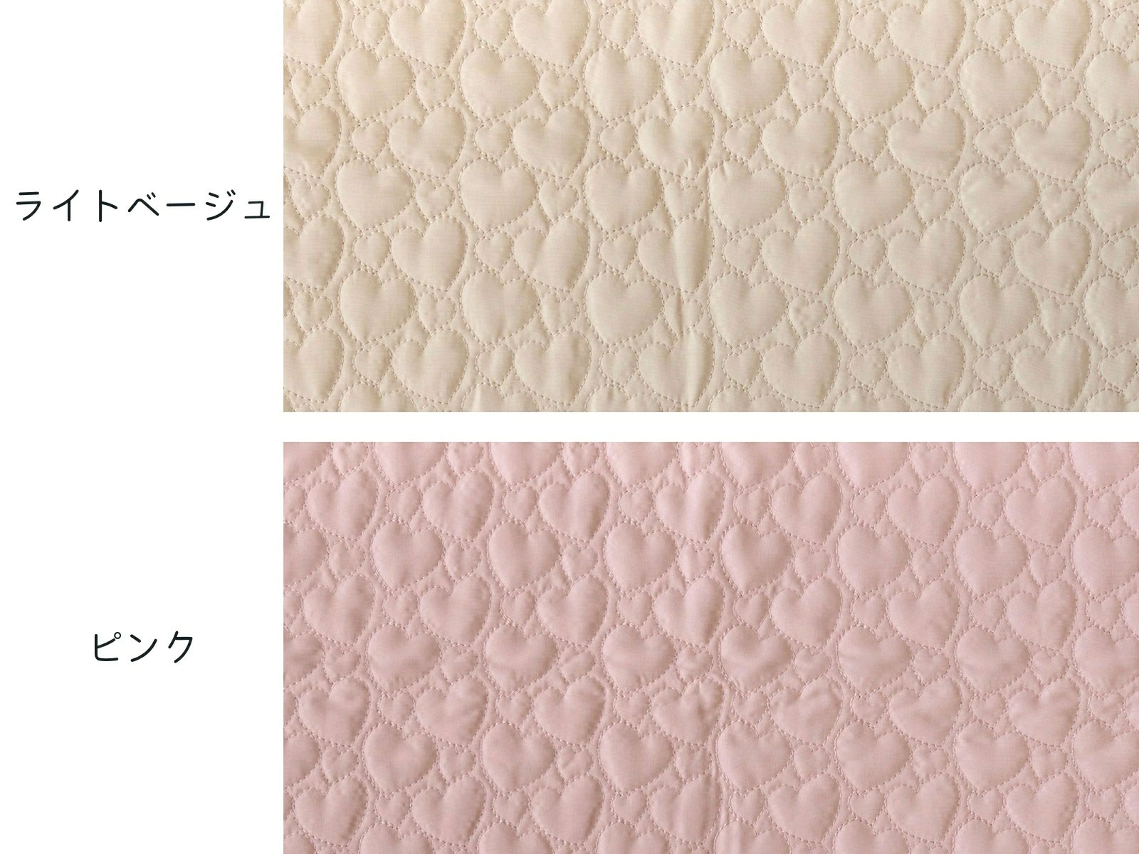 ハート柄にステッチをかけた、可愛らしいキルトです。