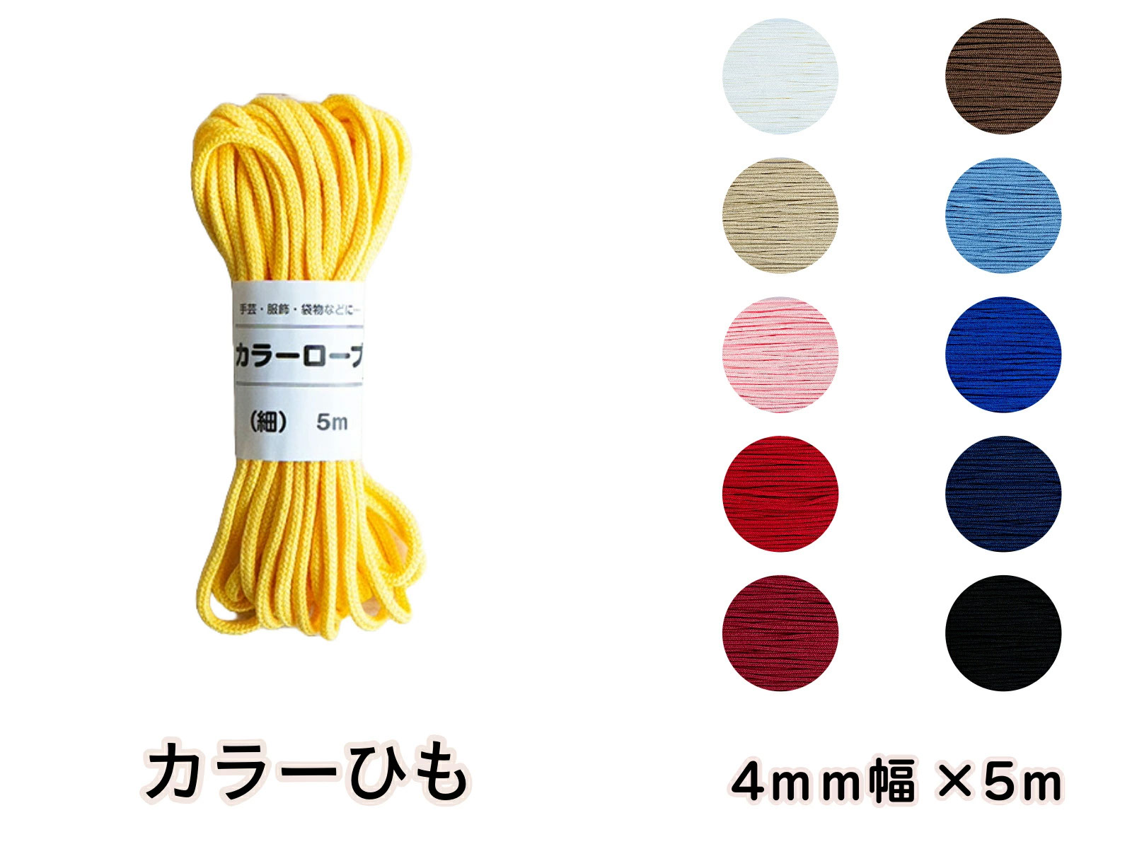 【手芸の丸十オリジナル】カラーひも(細)5m 全11色