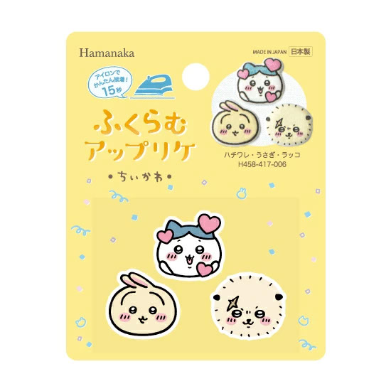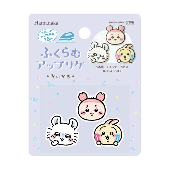 アイロンで簡単に接着できる「ちいかわ」のふくらむアップリケです。