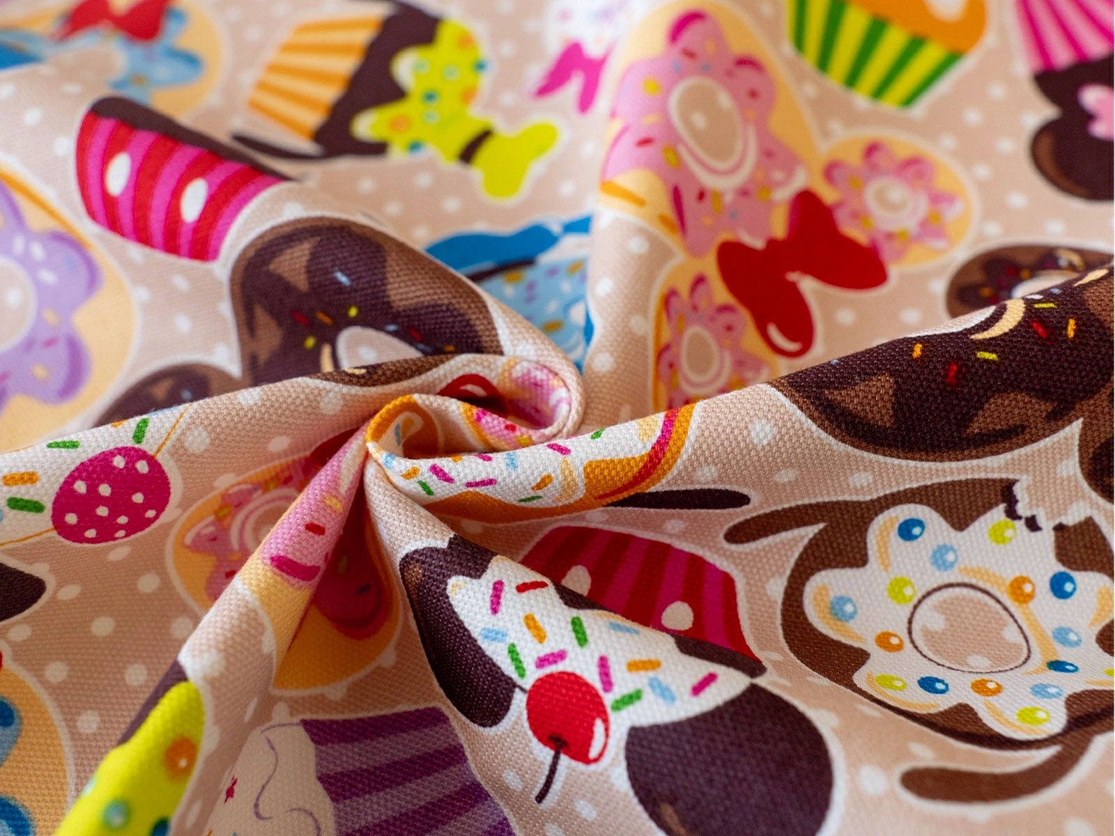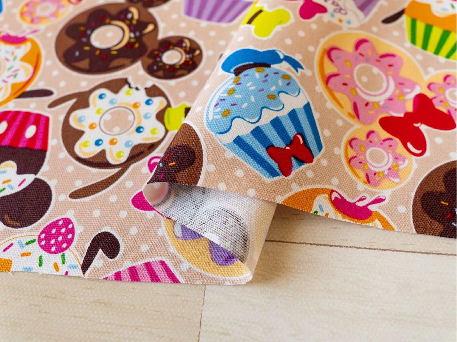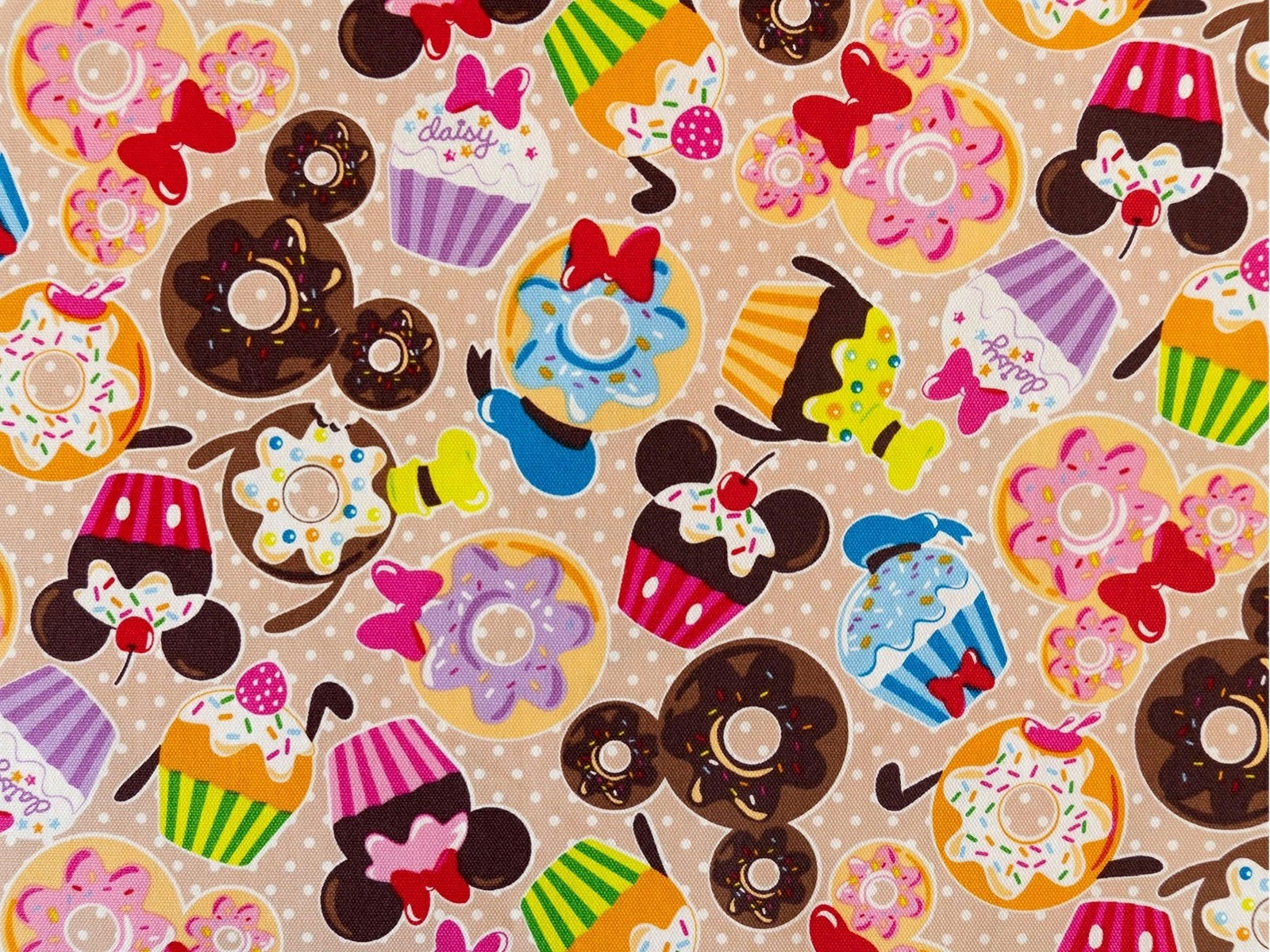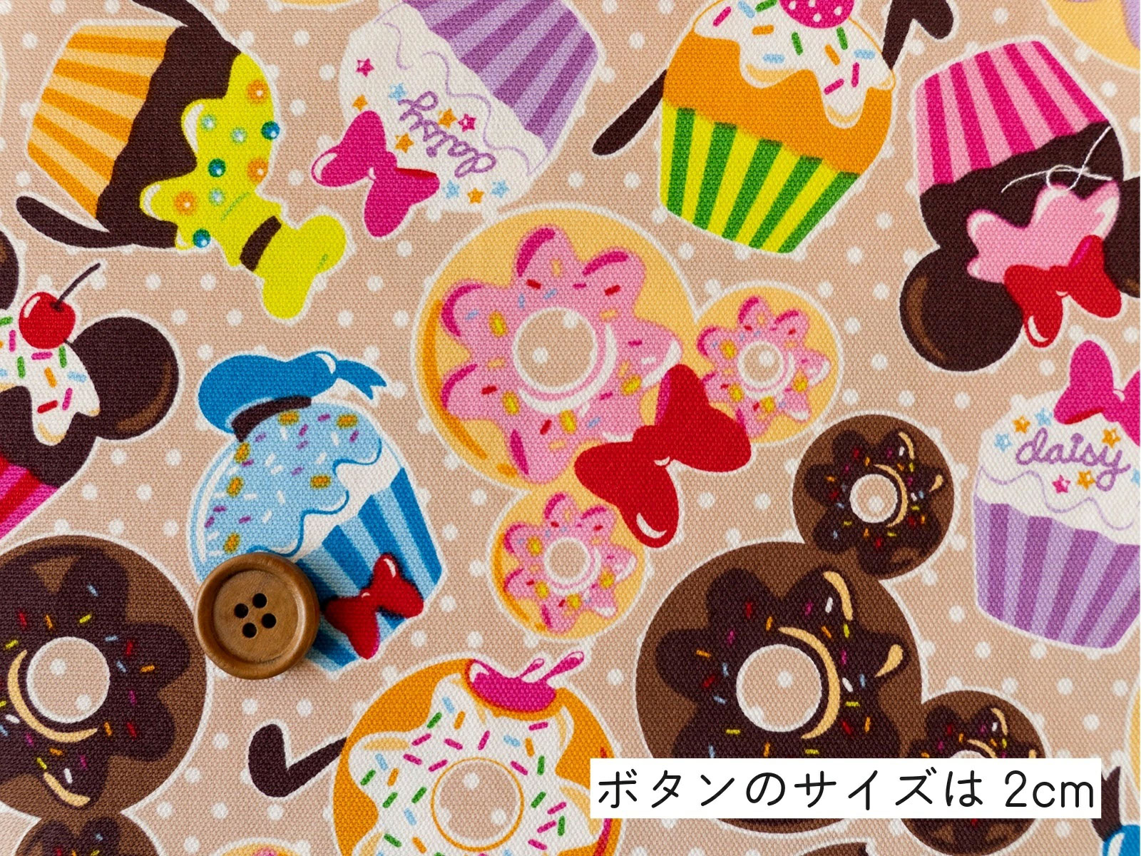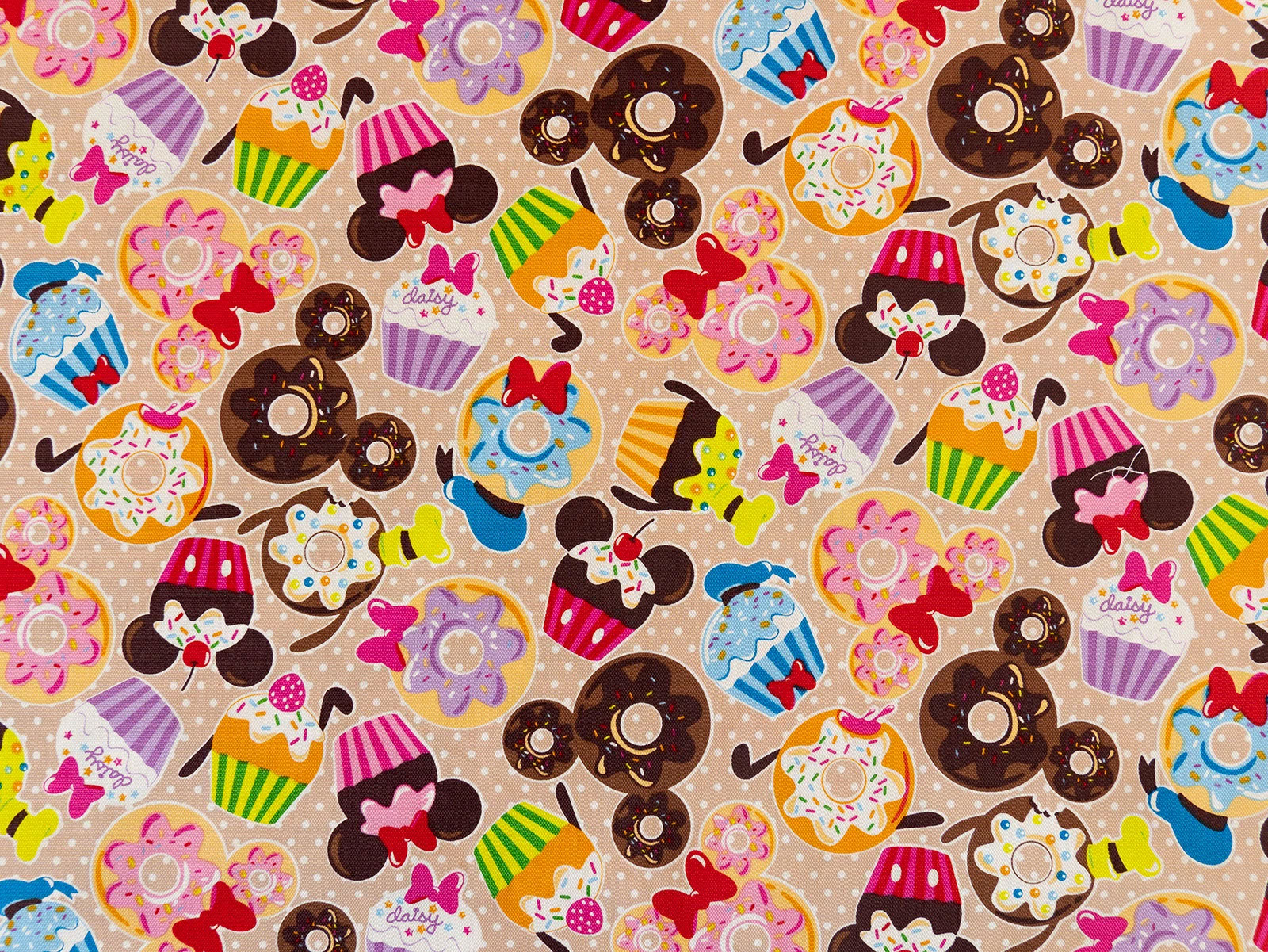 ミッキーマウスやミニーマウス、グーフィ、ドナルドダックなどミッキーの仲間たちをモチーフにしたドーナツ柄の生地です。