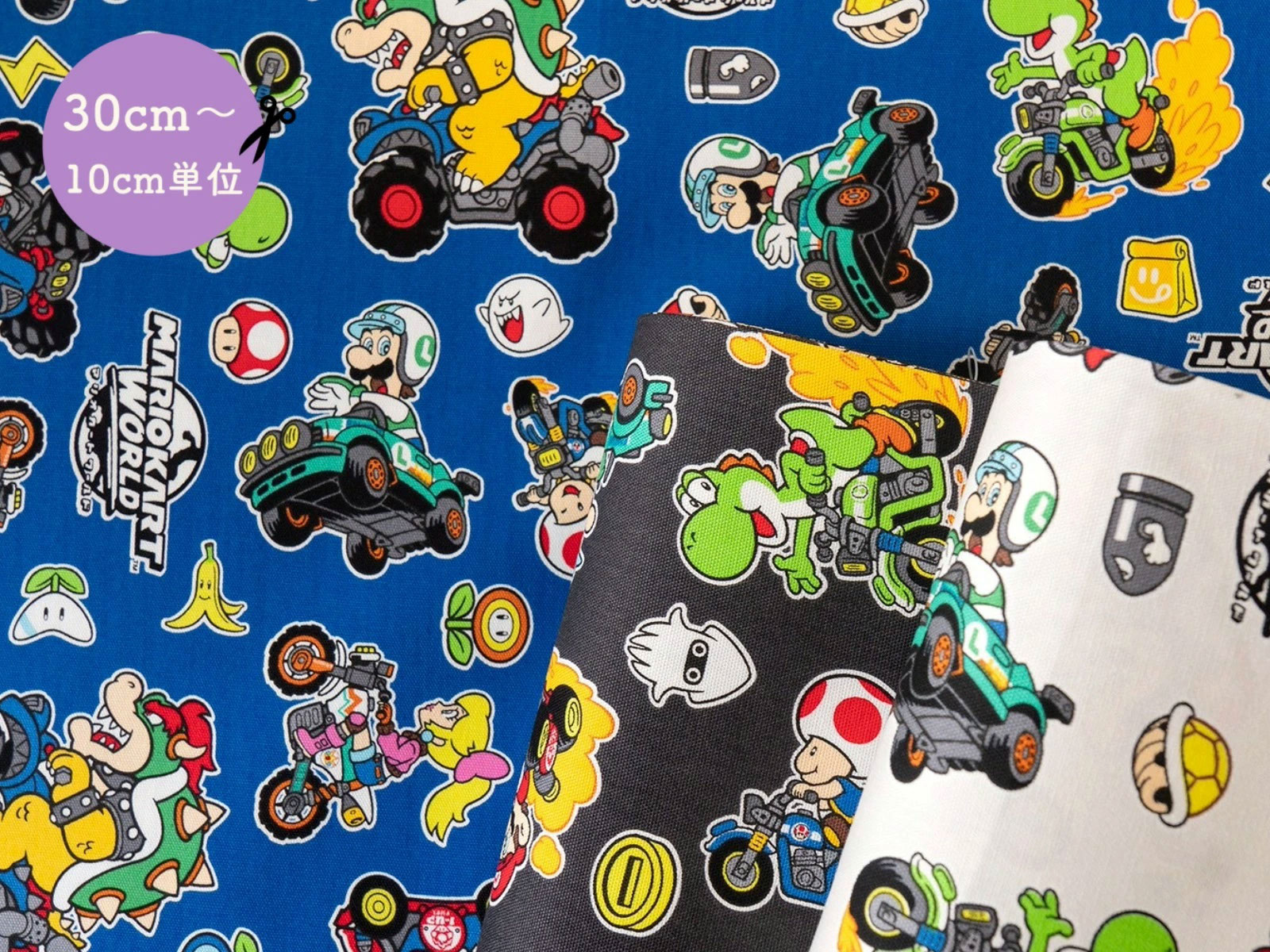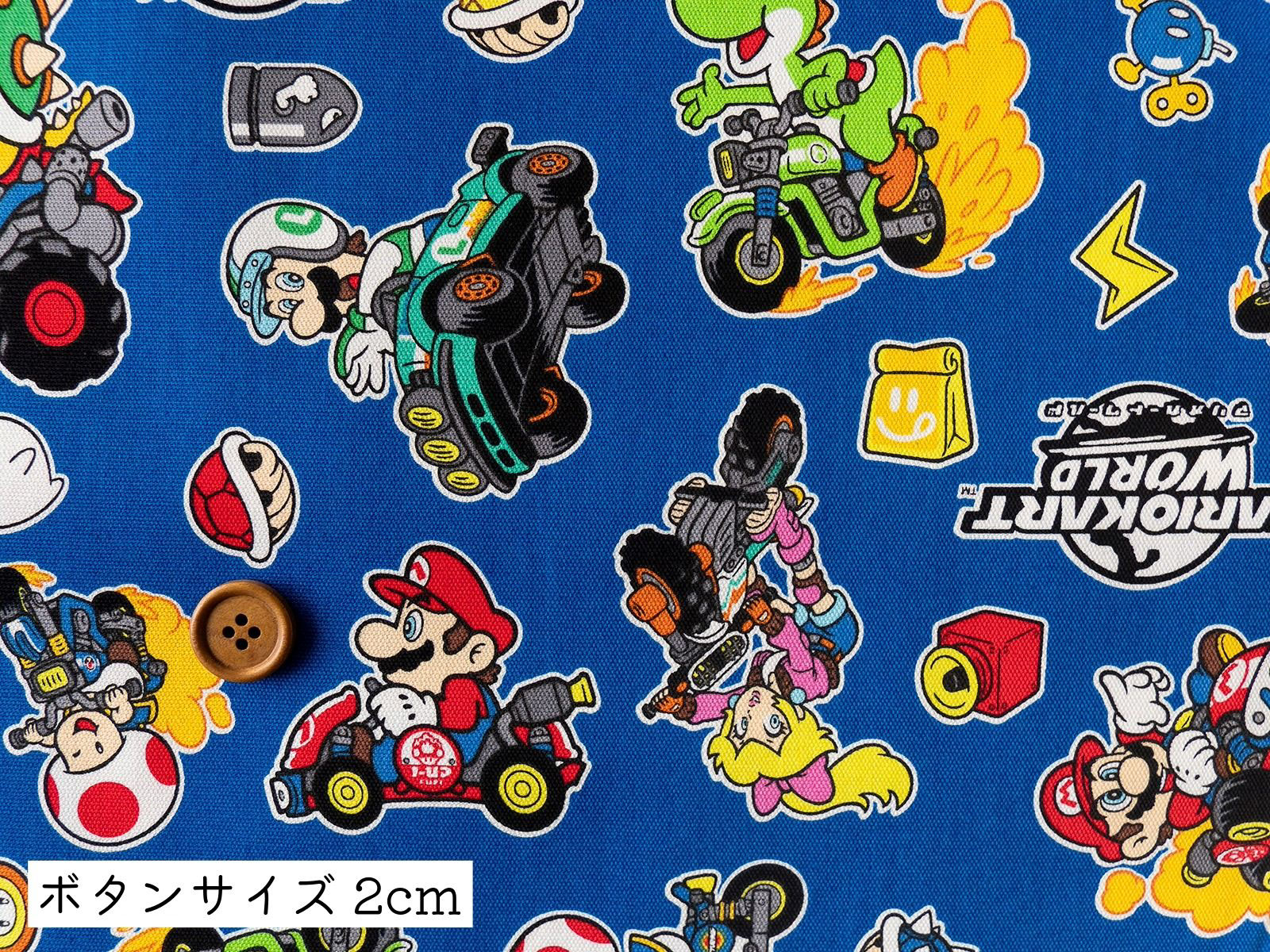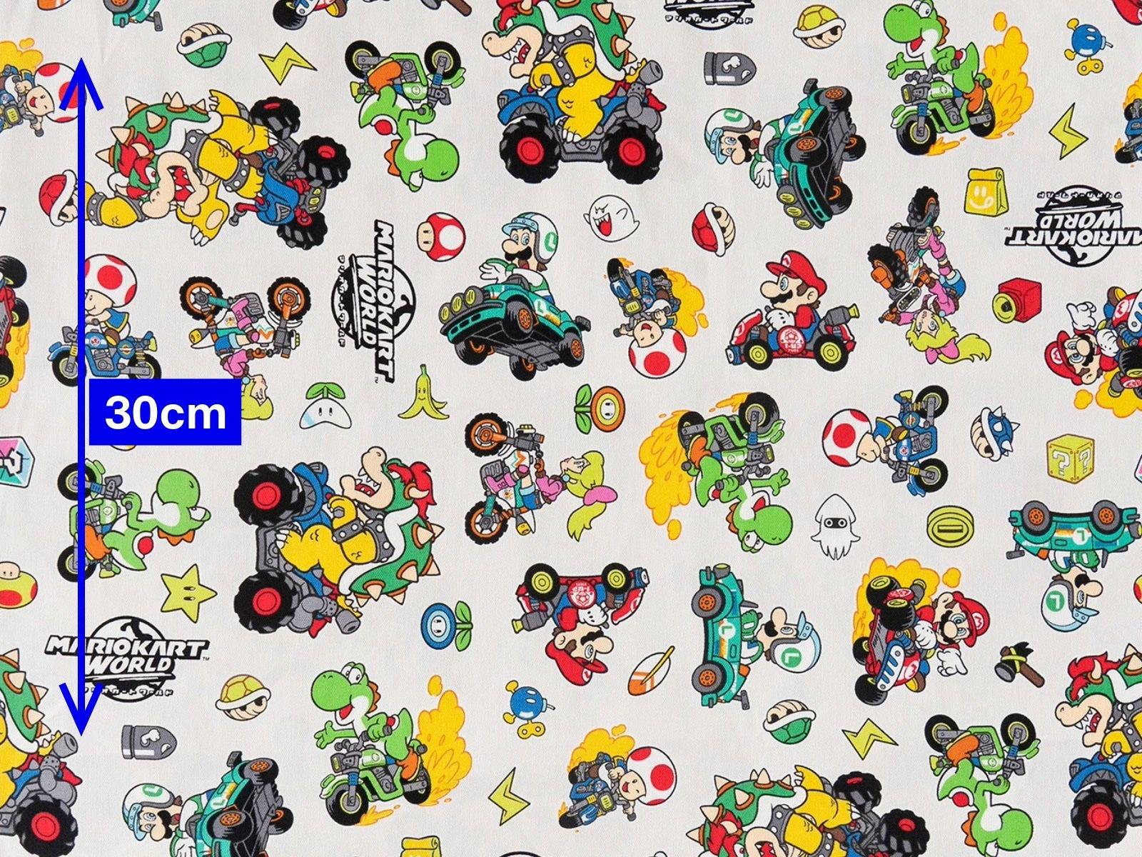 大人気のゲーム「マリオカートワールド」デザインのオックス生地。