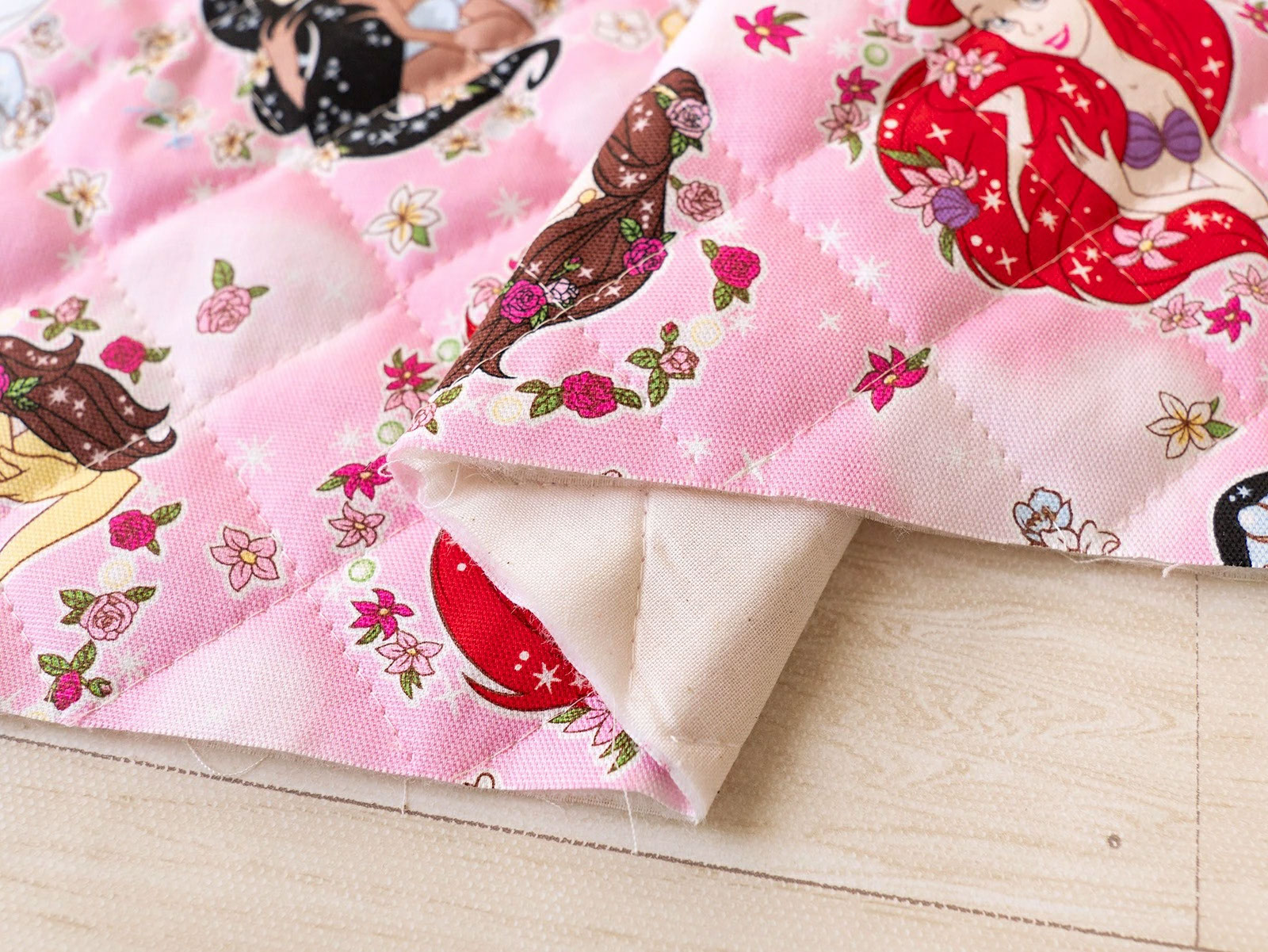 女の子に大人気のディズニープリンセスがデザインされた生地です。