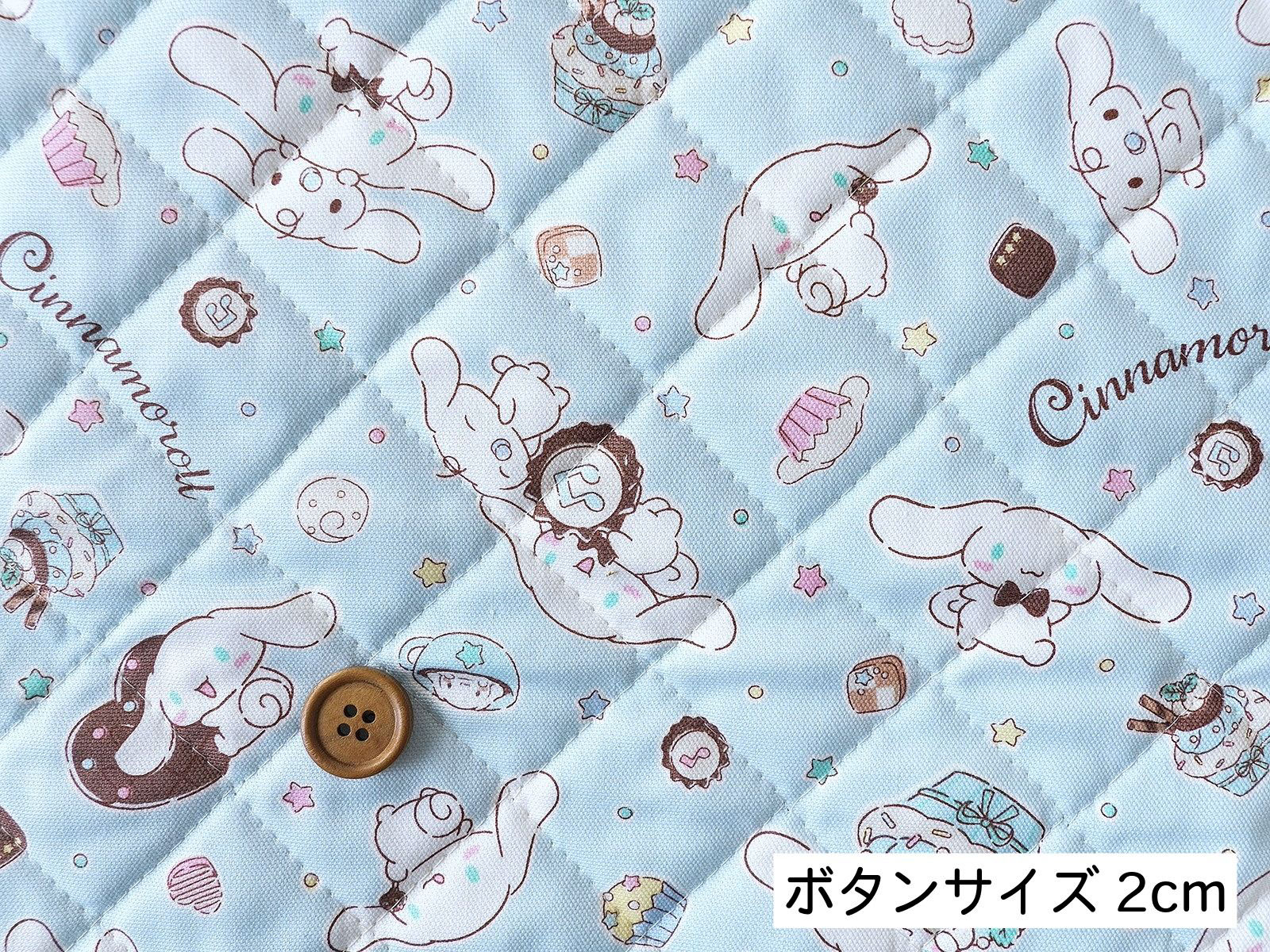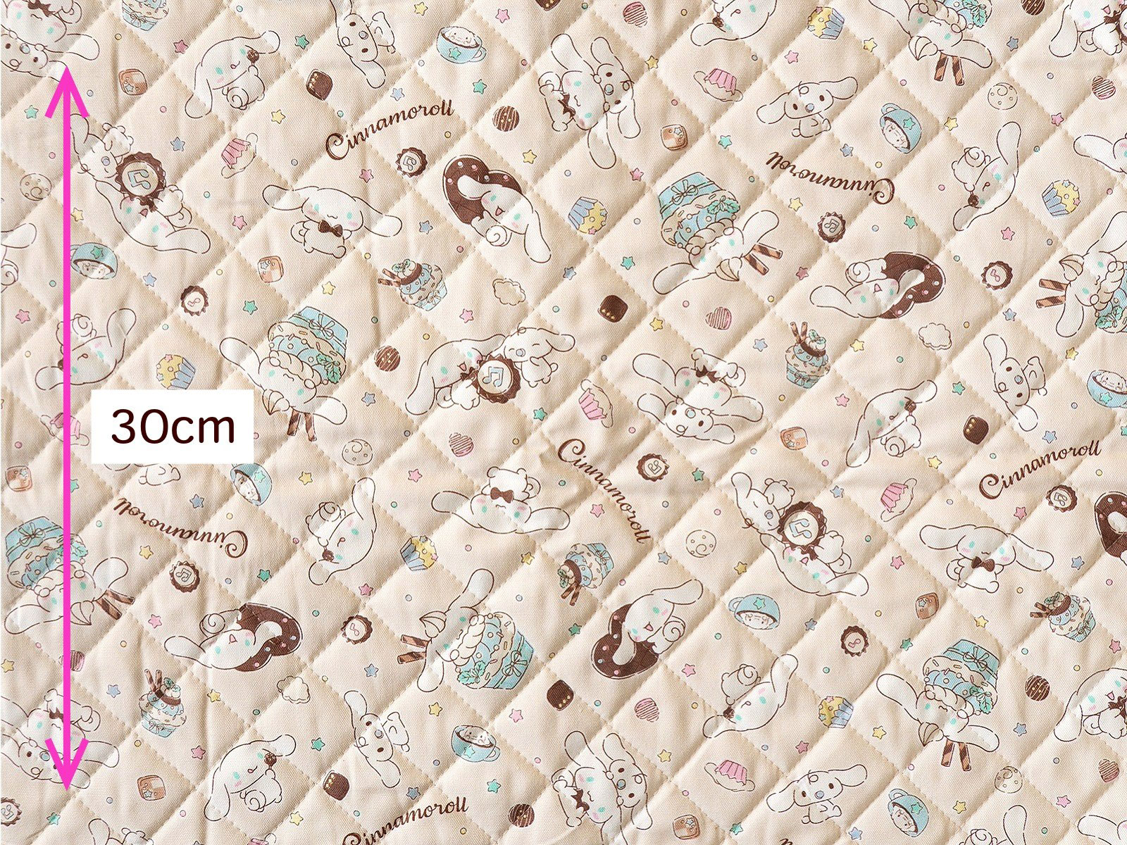 スイーツにかこまれたシナモンがとってもかわいいデザインの生地です。