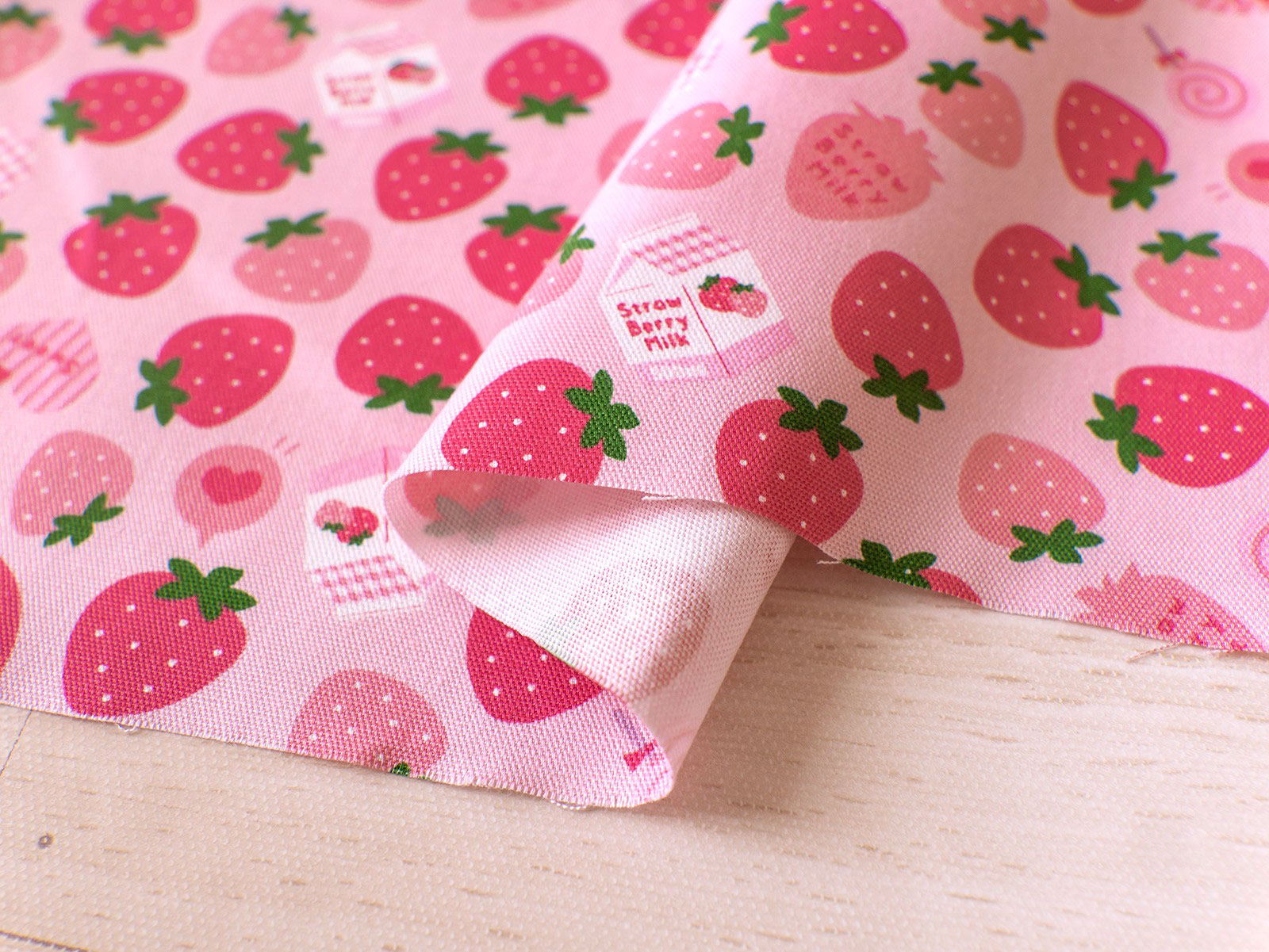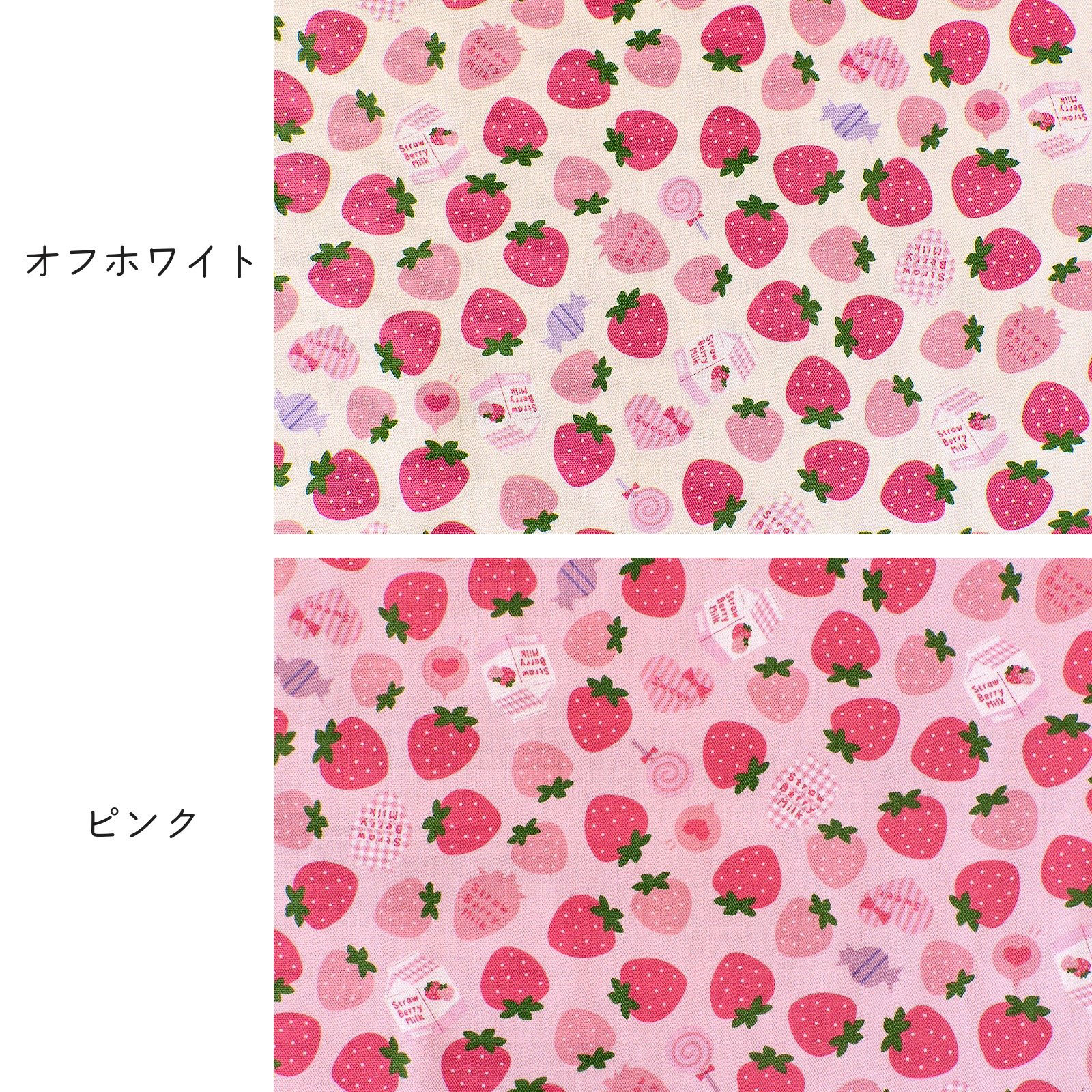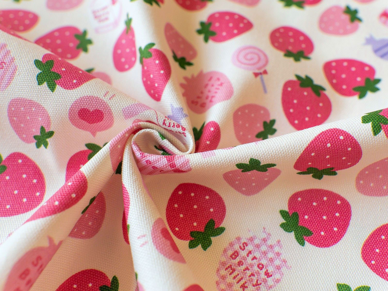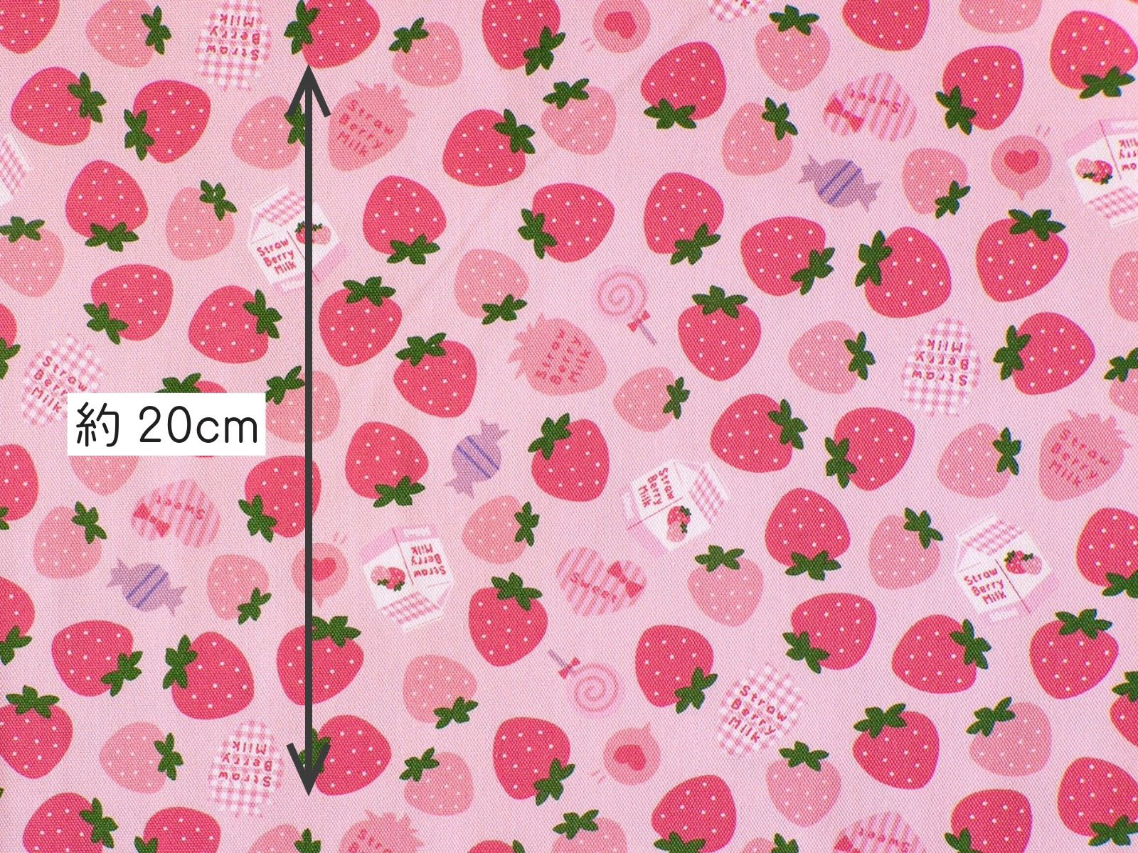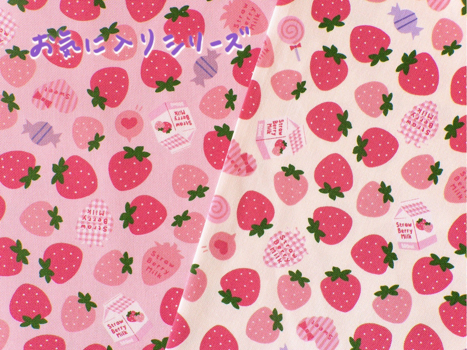 かわいらしい、いちご柄のオックス生地